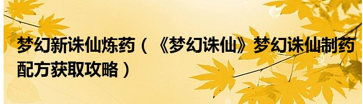 梦幻新诛仙炼药,《梦幻诛仙》梦幻诛仙制药配方获取攻略很多人还不知道,现在让我们!