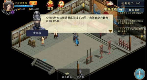 找到凌燕秋,需要完成杭州通天塔30层的挑战才可以继续任务,